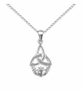 Sterling Silver Claddagh Celtic Trinity Earrings. lovely sterling silver earrings with the Celtic Trinity seated above the Irish Claddagh hearts. Matching Claddagh Celtic Trinity necklace available - sold separately.