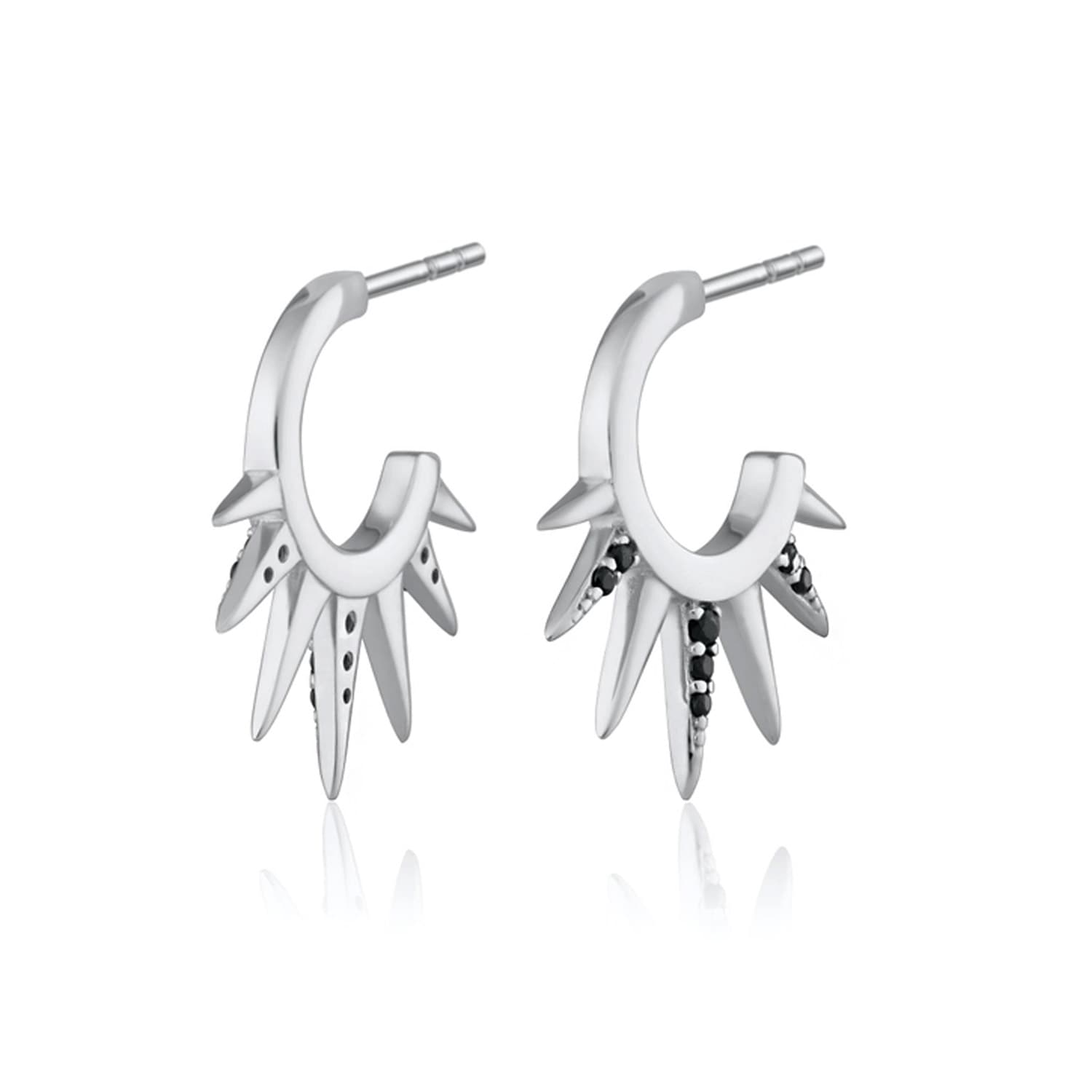 NEW: Black Nano Spike Hoops, Silver Rhodium